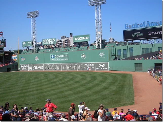 Maine Day at Fenway!!! The Sox were celebrating all the Red Sox fans in Maine. They flew the Maine state flag. There was an entire section of fans from Maine. The people who sang The National Anthem and God Bless America were from Maine. L.L. Bean employees came down and were doing giveaways. Several of the mascots from Maine teams were there. And lots of other stuff…